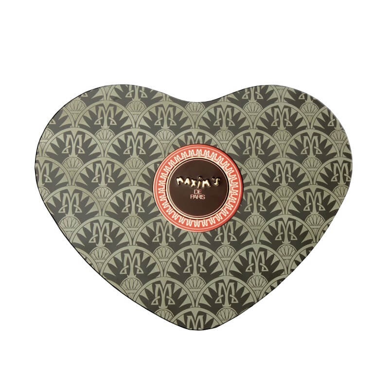 Maxim's de Paris Chocolade Hart in embossed Blik, 90 gram.