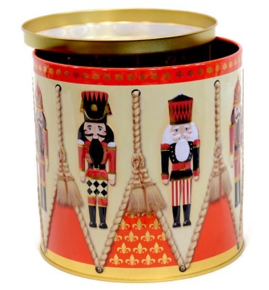 Prachtige embossed blik in de vorm van een Trommel met Notenkrakers er op. Erg leuk voor de kinderen, ideaal om het rondom Kerst, cadeau te geven.
