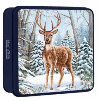 Mooi gevuld bewaarblik met Britse biscuits - 160 gram - koekjes met gember, citroen, chocolade schilferkoekjes en clotted cream - ideaal als Kerst en wintercadeau voor alle gelegenheden.