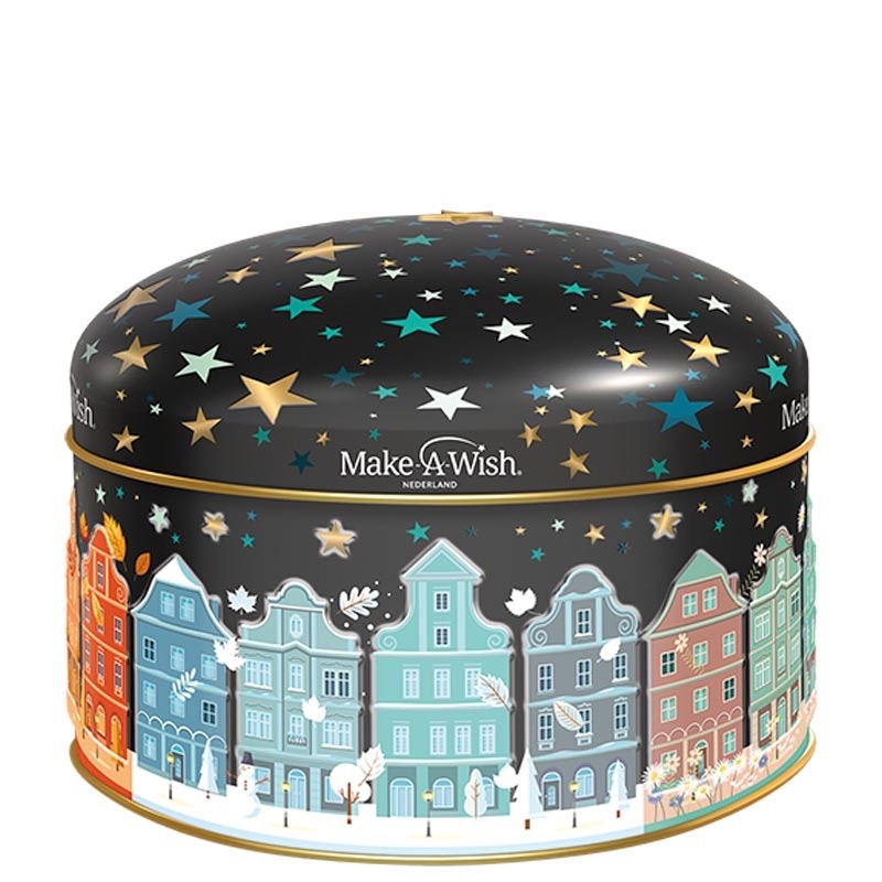 Maak je wintermomenten extra bijzonder met de Wish Upon a Star koektrommel, gevuld met verrukkelijke kaneelkoekjes. Deze stijlvolle trommel is niet alleen een heerlijke traktatie om te geven of te delen, maar steunt ook een goed doel. Een deel van de opbrengst gaat naar Make-A-Wish Nederland, zodat we samen dromen van ernstig zieke kinderen kunnen laten uitkomen.