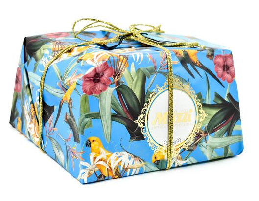 Klassieke Panettone cake met gekonfijt fruit en rozijnen in prachtige verpakking.