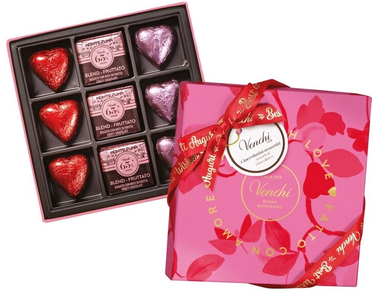 Venchi Chocolade Hart in mooie doos, 87 gram.