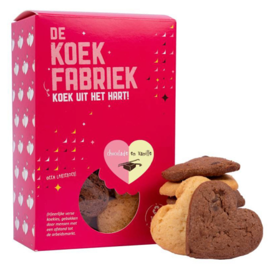 De Koekfabriek Vanille en Chocolade Hartjeskoek, 80 gram.