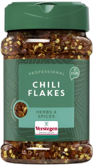 Maak kennis met Verstegen Chilivlokken, een pittige en smaakvolle aanvulling op uw kruidencollectie. Deze vlokken zijn gemaakt van gedroogde rode chilipepers van topkwaliteit en geven allerlei gerechten een pittige kick en een explosie van levendige smaak. Geef uw culinaire creaties een pittige toets: Verstegen Chilivlokken zijn perfect als topping op pizza, om pasta’s, roerbakgerechten, marinades, soepen en nog veel meer een pittige toets te geven. Gemaakt van 100% natuurlijke rode chilipepers, vrij van conserveermiddelen of kunstmatige smaakstoffen en zonder zout! Til uw gerechten naar een hoger niveau met de krachtige en vurige hitte van onze chilivlokken. Deze veelzijdige specerij is perfect om een pittige kick toe te voegen aan allerlei maaltijden en is een must-have voor zowel liefhebbers van pittig eten als avontuurlijke koks.