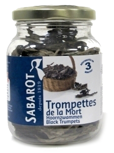 Sabarot Trompettes de la mort, gedroogde hoornzwammen in een potje, 30 gram.