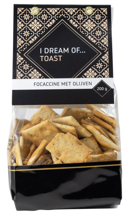 Foccacine Zwarte Olijven Crackers, 200 gram.