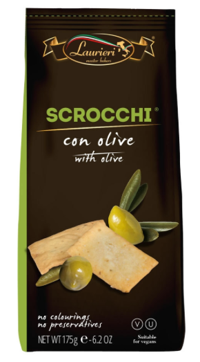 Laurieri Scrocchi olijf Crackers, 175 gram.