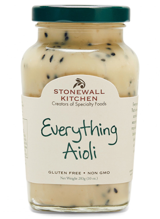 Iedereen houdt van een everything bagel*; een bagel met alles erop en eraan! Daarom heeft Stonewall Kitschen deze spectaculaire aioli gemaakt naar het populaire kruidenmengsel op die bagel. Met een romige, mayo-achtige basis plus een knapperige mix van zwarte sesamzaadjes, gedroogde uien, gedroogde knoflook en zeezout, is deze aïoli perfect voor een BLT, zalmburger of wrap.