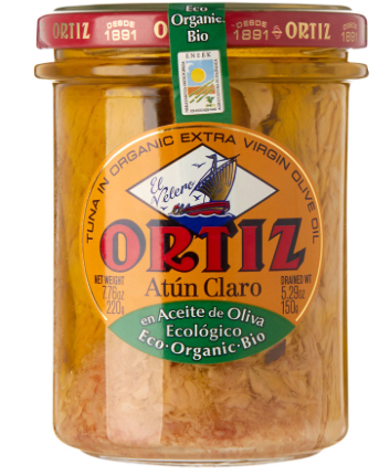 De yellowfin tonijn staat ook wel bekend als de geelvintonijn. De unieke smaak van deze vis is te danken aan het ambachtelijke productieproces en de topkwaliteit van de biologische olijfolie. De vis wordt met de lijn gevangen, zo ontstaat er geen bijvangst.Ortiz is in 1891 opgericht door de Spanjaard Bernardo Ortiz de Zárate. In het begin van de twintigste eeuw werd Ortiz wereldwijd bekend. Het is een echt familiebedrijf: inmiddels staat de vijfde generatie aan het roer. Het Spaanse Conservas Ortiz is gespecialiseerd in visconserven. Niet zomaar ingeblikte vis, maar producten van hoge kwaliteit. De onderneming werkt met veel respect voor traditie, zoals de kustvisserij op basis van getijden: precies zoals hun voorouders het deden. Verder verkoopt Ortiz exclusief lijngevangen tonijn. Een ander bijzonder product is sardine millésime. Deze vis is vervaardigd in een bepaald jaar en heeft een paar maanden gerijpt. Dit geeft de sardientjes een excellente smaak.
