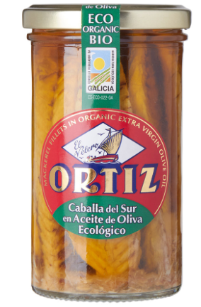 De producten van Ortiz komen uit Galicië in Noord-Spanje en zijn van de hoogste kwaliteit. De makreel is gevangen in de Baskische zee en is volledig met de hand bewerkt. De makreel heeft een milde smaak en is rijk aan Omega 3-vetzuren. Heerlijk om zo op te eten of om bij een gerecht te presenteren.