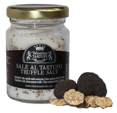 Valnerina truffelzout met zwarte truffel, 100 gram. Geschikt voor vele gerechten.
