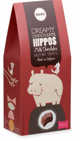 Barú Deze verpakking van Baru bevat nijlpaardvormige chocolaatjes, 60 gram.