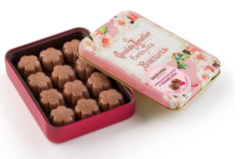 Amatller Chocolade Bloemblaadjes Framboos, 72 gram.