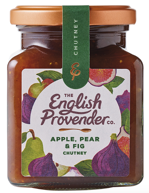 Ingrediënten: suiker, Bramley appels (23%), peer (20%), GERSTEMOUTAZIJN, gedroogde vijgen (5%) (gedroogde vijgen, rijstmeel), Bramley appelpuree (5%), uien, gedroogde ui, knoflookpuree, zeezout, gemberpuree, kruiden. Bevat gluten.