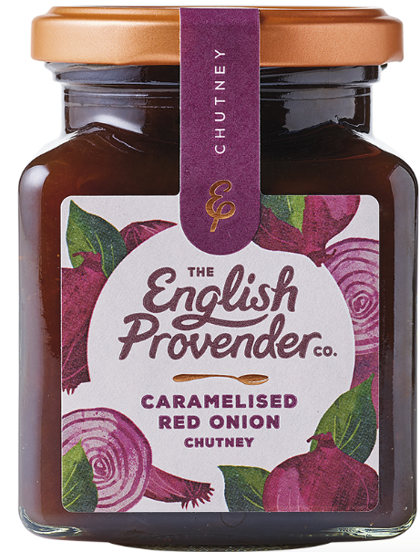 Ingrediënten: rode ui (30%), suiker, Bramley appels, witte wijnazijn, Muscovado suiker, Balsamico azijn Modena (witte wijnazijn, druivenmost), melasse, zeezout, gedroogde ui, knoflookpuree, gemberpuree.