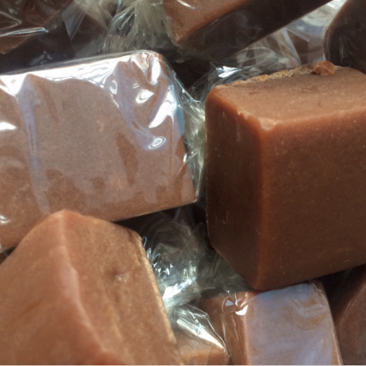 Ingrediënten: Suiker, glucosestroop, gezoete gecondenseerde magere MELK, palmolie, fondant: (suiker, glucosestroop, water), cacaopoeder (4%), weipoeder (MELK), dextrose, boter (MELK), zout, natuurlijke chocolade aroma, emulgator: SOJA lecithine. Voor allergenen: zie ingrediënten in HOOFDLETTERS. Kan sporen van NUTS bevatten. Geschikt voor vegetariërs. Bewaar in een koele, droge plaats.