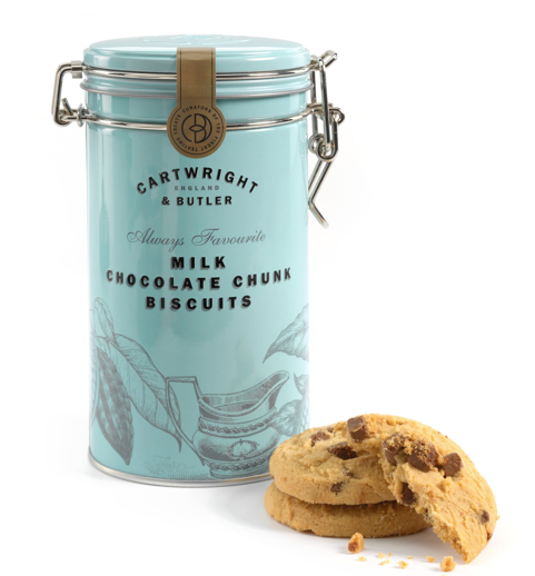 Cartwright & Butler Milk Chocolate Chunk Koekjes in Blik, 200 Gram.