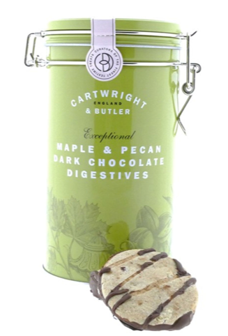 Cartwright & Butler Maple & Pecan Dark Chocolate Digestives in Blik, 200 Gram.