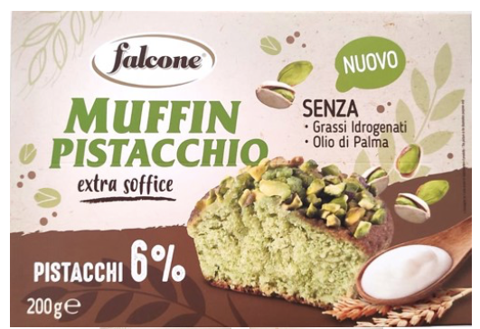 Ingrediënten: Zacht TARWEmeel type “0”, suiker, zonnebloemolie met hoog oliezuurgehalte, gepasteuriseerde EIEREN, melange (plantaardige oliën en vetten (kokosnoot, zonnebloem), BOTER 30%, water), volle witte yoghurt (MELK) 6%, PISTACHEmeel 4%, TARWEzetmeel, WEI-eiwitten, EIGEEL, aroma's, emulgator: mono- en diglyceriden vetzuren, stabilisator: sorbitol, glucosestroop, rijsmiddelen (dinatriumdifosfaat, natriumwaterstofcarbonaat, zachte TARWEbloem type “0”, SOJAlecithine, zout, chlorofyl. PISTACHE-korrels 2%.
