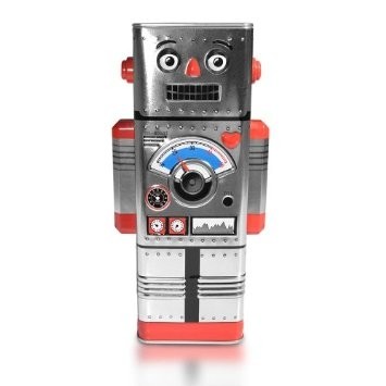 "Robot" blik zilver, inclusief 150 gram koekjes
