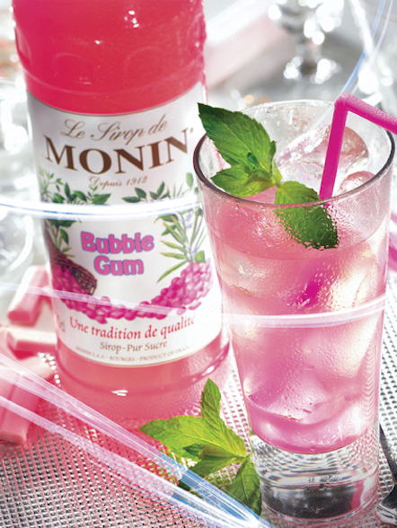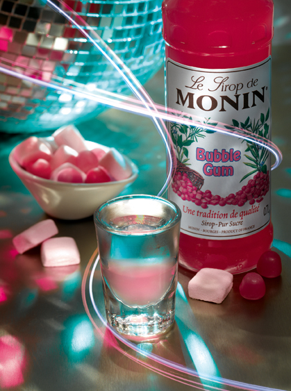 Met Monin Bubble Gum kunt u eindeloos nieuwe cocktailcombinaties creëren. Durf anders te zijn met deze siroop en laat je fantasie de vrije loop door je eigen bubbels toe te voegen om bubbel gum soda's te maken voor kinderfeestjes of mooie roze shooters voor meisjesavonden.