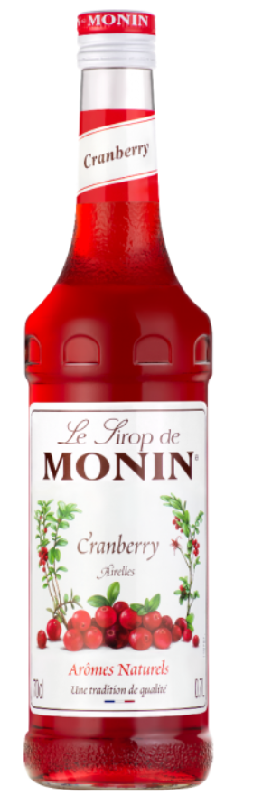 Monin Cranberry siroop brengt de levendige rode kleur en perfecte balans van zoet en zuur van de cranberry waarmee u heerlijke cocktails, frisdranken, martini's en thee mee kunt maken!