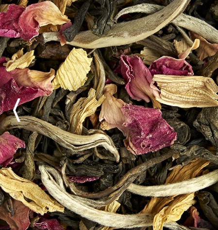 Gabrielle: Mix van groene en witte thee, geparfumeerd met bloemen en yuzu