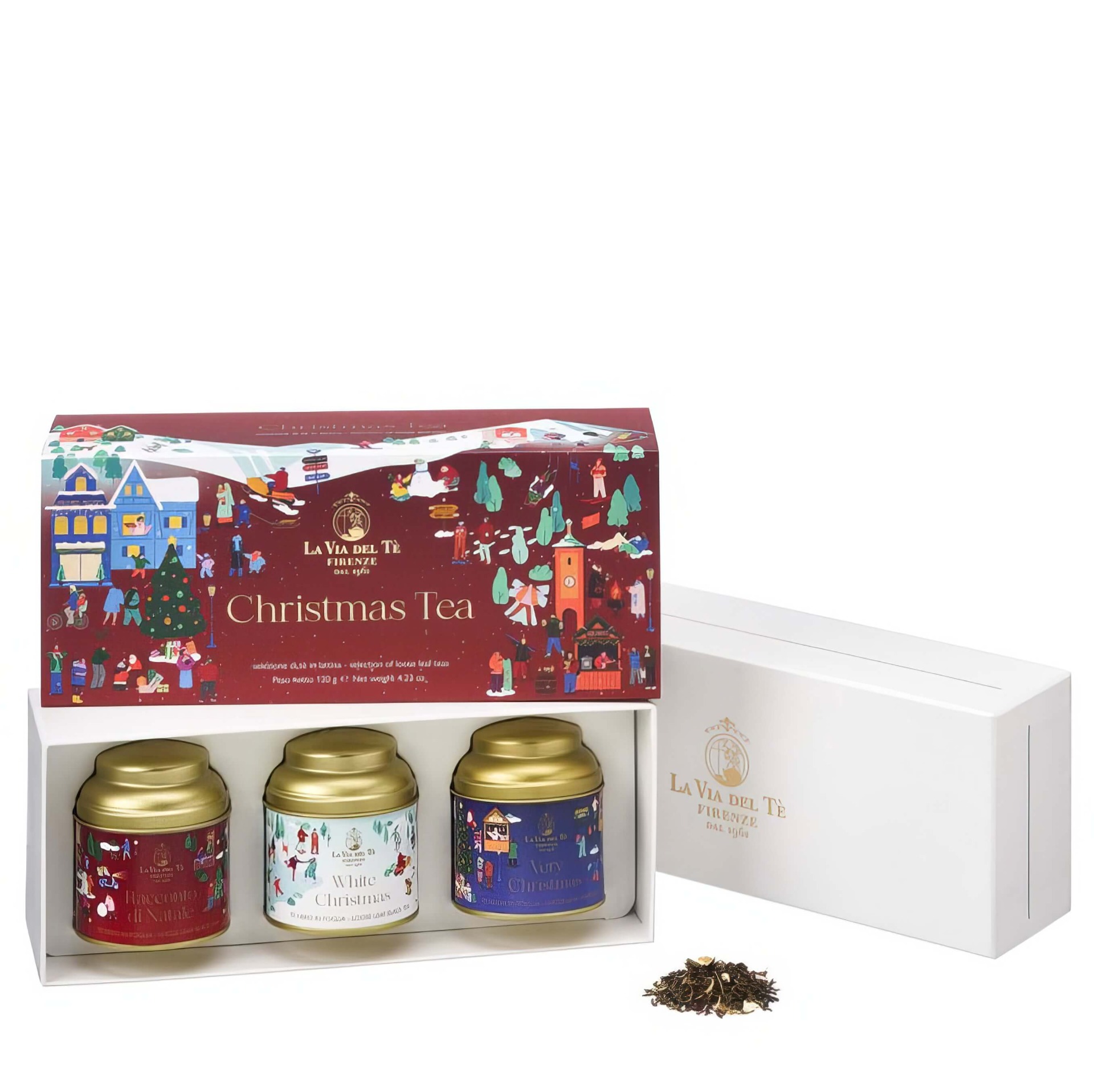 La Via del Tè Kerstthee Geschenkdoos met 3 blikjes thee, 40 gram.