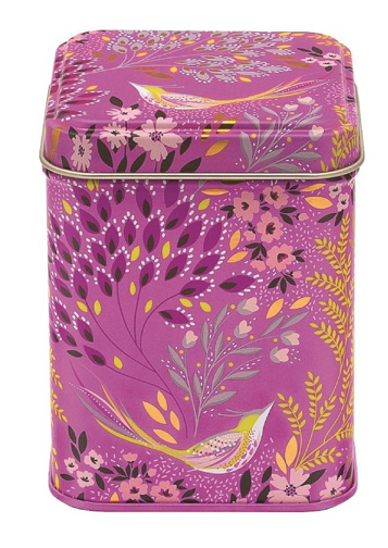 Fantastisch roze/paarse bewaarblikje met zangvogels uit de Haveli Garden Collection.