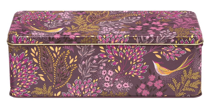 Fantastisch roze/paarse bewaarblikje met zangvogels uit de Haveli Garden Collection.