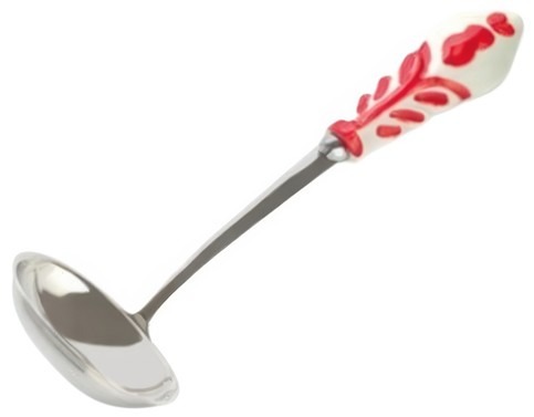 Mestolo Acciaio Vietrese: Een met de hand versierde Vietri keramieken handgreep uitmondend in een stalen opscheplepel met Italianavera "tomaat"-logo. Ideaal om net dat beetje extra aan je tafels te geven