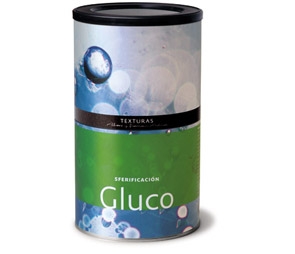Gluco bestaat uit calcium gluconolactate, een mengsel van twee calciumzouten (calciumgluconaat en calciumlactaat) dat een product dat rijk is aan calcium en perfect voor de techniek van Inverse spherification produceert, terwijl het toevoegen geen smaak helemaal aan het voedsel in voorbereiding. In de voedselindustrie calcium gluconolactate heeft verschillende levensmiddelen verrijkt met calcium. Gluco werd gekozen om zijn uitstekende gedrag spherification processen