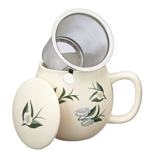 Porseleinen theemok met exclusief La Via del Tè bloempatroon (350 cc) met deksel en roestvrijstalen zeef, ideaal om snel je favoriete thee te bereiden. Het bloempatroon is afkomstig van de verwerking van Camellia Sinensis, een plant die groeit in streken met een warm en vochtig klimaat, en het is de bloem van deze plant die de hoofdrolspeler is in het nieuwe patroon van deze Camilla Camelia theemokken.