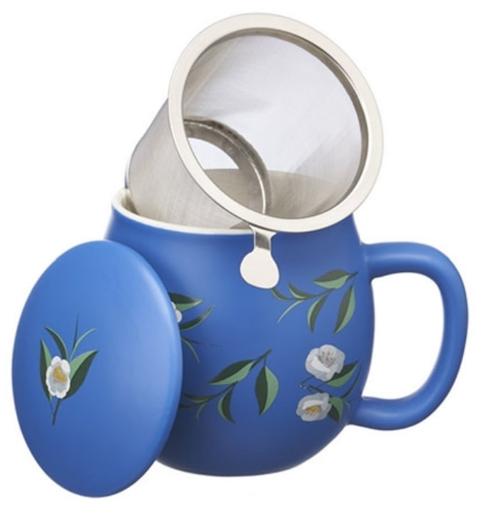 Porseleinen theemok met exclusief La Via del Tè bloempatroon (350 cc) met deksel en roestvrijstalen zeef, ideaal om snel je favoriete thee te bereiden. Het bloempatroon is afkomstig van de verwerking van Camellia Sinensis, een plant die groeit in streken met een warm en vochtig klimaat, en het is de bloem van deze plant die de hoofdrolspeler is in het nieuwe patroon van deze Camilla Camelia theemokken.