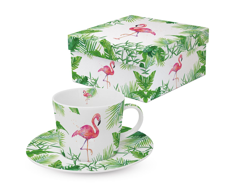 Gedecoreerd koffiekopje met bijpassende schotel, gemaakt van fijn magnesiumporselein. De beker heeft een inhoud van 0,2 l, hoogte van 7 cm en een diameter van 8,5 cm. De diameter van de schotel bedraagt: 15,5 cm. Ze zijn vaatwasmachinebestendig en geschikt voor gebruik in de magnetron.