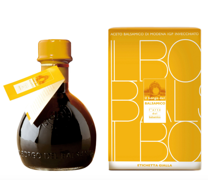 Il Borgo, balsamico azijn "yellow label", 250 ml. Heerlijke 3 jaar oude balsamico azijn. Fris-zuur. Deze jonge balsamico heeft drie jaar gerijpt op eikenhouten vaten. Hij is perfect voor het dagelijks gebruik in de keuken. Hij heeft een fris zuur, licht scherp randje. Dit is vooral erg lekker in combinatie met een peperige rucola en zachte mozzarella salade. Gebruik hem als basis azijn in een vinaigrette. Combineer hem met een lekkere olijfolie uit Malaga.