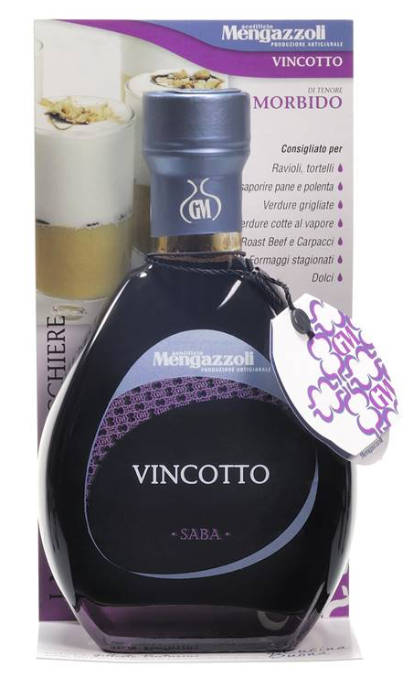 Vincotto, ook bekend als Saba, dankt zijn donkere karamelkleur die wordt gevormd tijdens het koken van de most en verschilt van balsamico-azijn vanwege het absolute gebrek aan zuurtegraad.