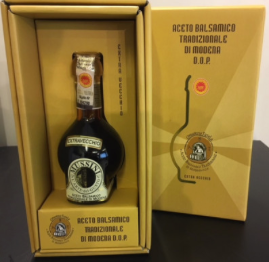 Dit is een 25 jaar oude Aceto Balsamico Tradizionale di Modena. Een pronkstuk, zo noemen wij hem zelf. Het is een dikke, stroperige balsamico boordevol smaak. Door zijn zoete toetsen is hij ideaal te gebruiken in speciale gerechten. Denk aan combinaties met oude brokkelkaas, mooie stukjes rood vlees of aan een carpaccio van sint jacobsschelpen. Deze Italiaanse klassieker bezit zoveel kracht, dat je aan een paar druppeltjes genoeg hebt. Een fantastisch product, dat met liefde en volgens traditie voor je wordt gemaakt.