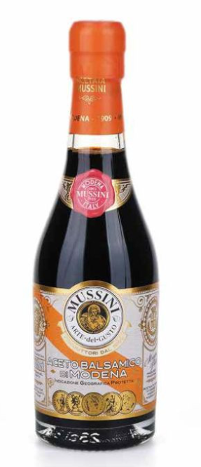 Een donkere, rijke balsamico azijn. Deze balsamico azijn uit Modena en donkere en rijke kleur, een doordringende geur en een aangename zuurgraad. Het is perfect bij gegrild vlees, vis en gestoomde groenten of besprenkeld over kaas, aardbeien, peren, vijgen en zelfs ijs!