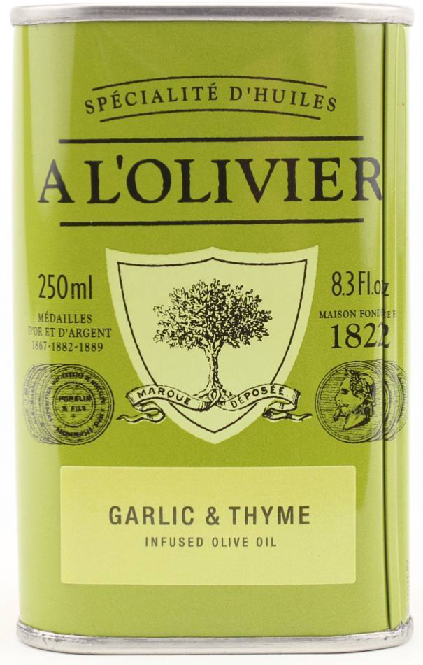 A L'Olivier Knoflook & Tijm Olie in blik, 250ml.