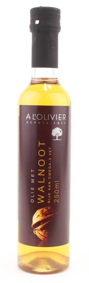 Raapzaadolie met natuurlijk walnootextract, deze notenolie is geschikt voor dressings, sauzen, marinades en om in te bakken.
